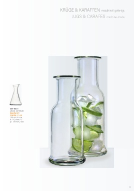 KRÜGE & KARAFFEN maschinell gefertigt JUGS & CARAFES machine-made 505 00 61 alt/old: 40158/30 Karaffe 0,1 l Carafe 3 ½ oz 100 ml / 3½ oz H: 132 mm / 5“ D: 79 mm / 3¼“ 77